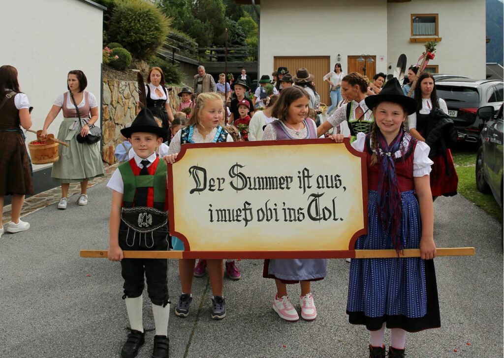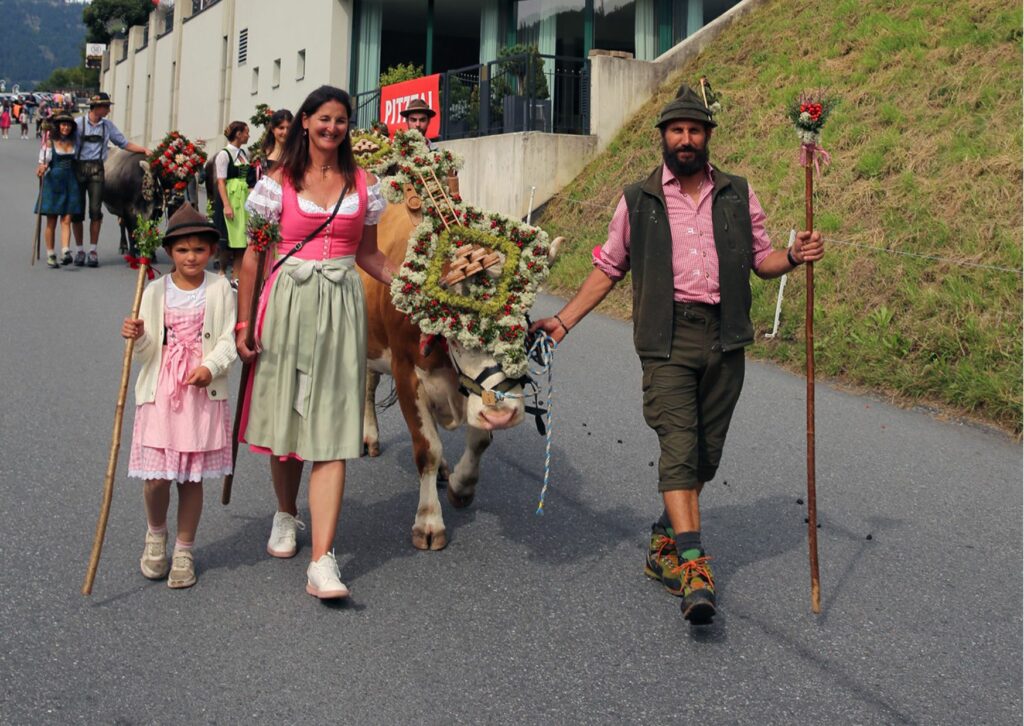Die sind prachtvoll geschmückt und die Glocken klingen weit ins Tal hinein. Es herrscht Freude und Erleichterung: Ein langer, arbeitsreicher Almsommer geht zu Ende, und alle sind wohlbehalten wieder im Tal angekommen. Das darf gefeiert werden.