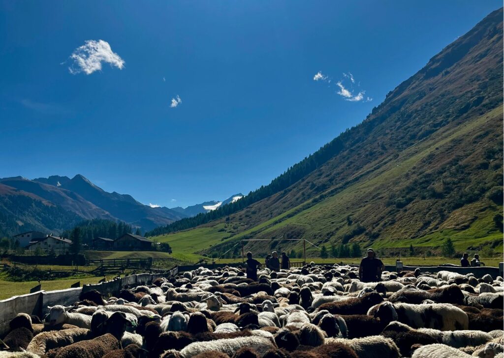 Der Almabtrieb findet im hinteren Ötztal statt, wo die Schafe den Sommer über auf den Alpen verbringen dürfen – begleitet und betreut von erfahrenen Hirten, die die Tiere täglich pflegen und überwachen. Am Ende des Almsommers kommen alle Schafe zusammen, und die jeweiligen Bauern holen ihre Tiere nach Hause – jedes Jahr ein ganz besonderer Moment, der viel Tradition und Verbundenheit in sich trägt.