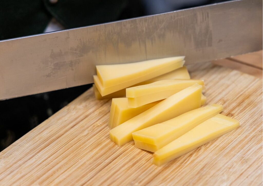 Die Verarbeitung erfolgt traditionell in der Almkäserei. Heraus kommt ein Bergkäse mit vollmundigem Aroma, goldgelber Rinde und festem, geschmeidigem Teig – ein echtes Stück Tiroler Genusskultur.