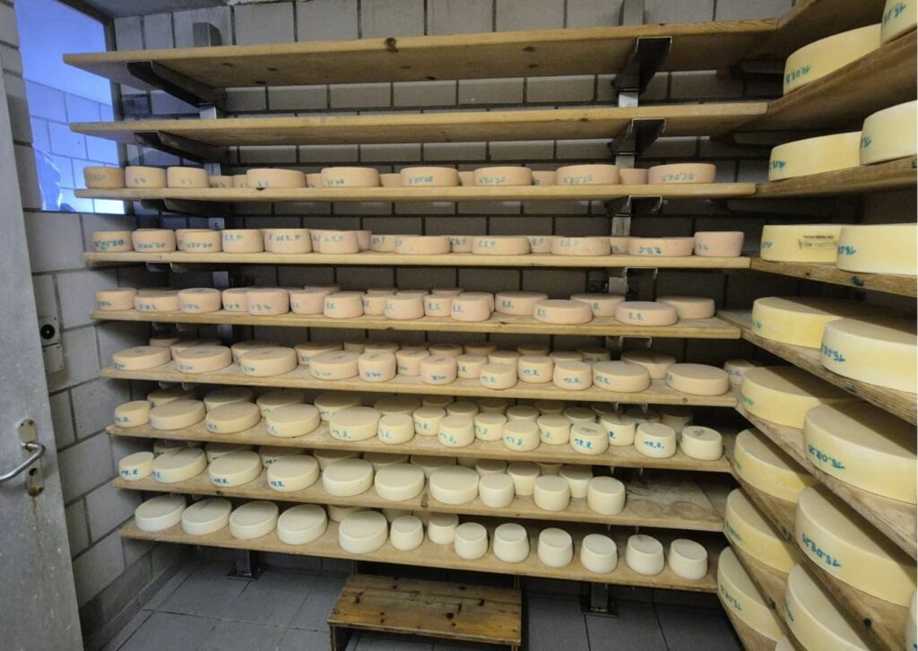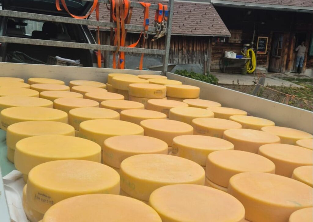 Mitte des Alpsommers findet die verpflichtende Alpkäsetaxierung des Berner Alpkäses AOP statt. Mein Berner Alpkäse wird begutachtet und bewertet – ein Moment voller Anspannung, aber auch Stolz, denn die Mühe spiegelt sich in der Punktezahl wider. Danach erfolgt die erste von zwei Käseabgaben an die Bauern. Mit rund fünf Tonnen Käse im Speicher und Keller herrscht Platzmangel. Anhand der Milchabgabe der Kühe berechne ich, wie viel Käse jedem Bauern zusteht, und innerhalb von zwei Tagen ist alles abgeholt. Danach wasche, trockne und räume ich die Bretter wieder ein, damit die neuen Käse darauf reifen können.