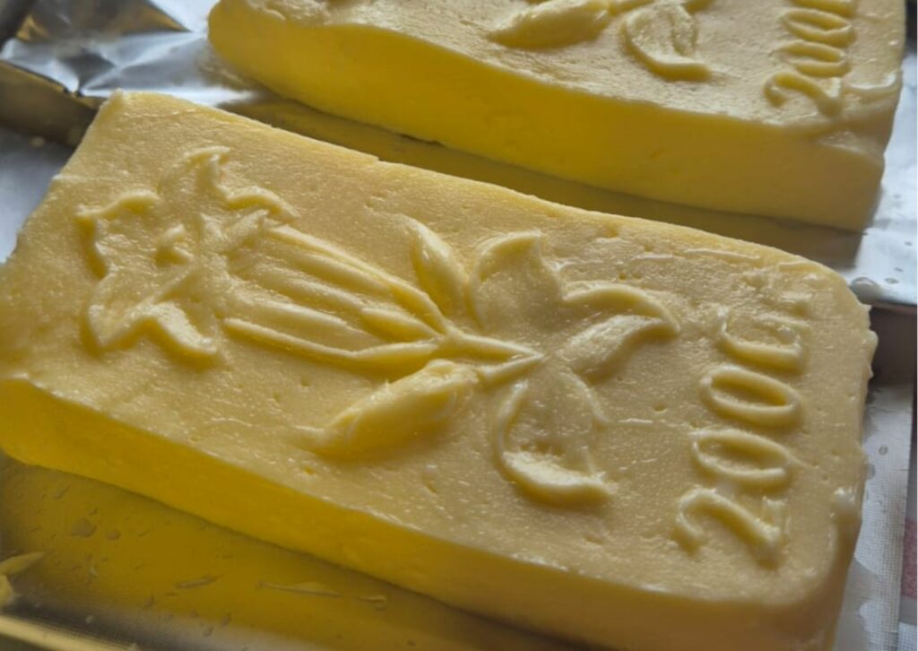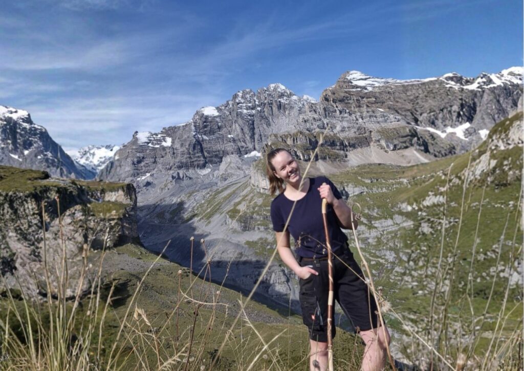 Meine Hauptaufgabe liegt in der Milchverarbeitung, doch nebenbei helfe ich beim Kochen, Kühe treiben, Brot backen, Zäune reparieren und vielem mehr. Als gelernte Milchtechnologin verarbeite ich rund 1500 Liter Milch zu Joghurt, Butter, Mutschli, Raclette und Berner Alpkäse AOP. Handarbeit, Ausdauer und Leidenschaft begleiten mich bei jedem Schritt. Die noch sehr traditionelle Herstellung der Milchprodukte beeindruckt mich enorm. Alle Käse pflege ich über den Sommer hinweg händisch – ein intensiver, aber schöner Rhythmus. Nach etwa sechs Produktionstagen verlagere ich die Alpkäse in einen tiefergelegenen Käsespeicher, da der Keller auf der Alp zu wenig Platz bietet, und pflege sie auch dort täglich weiter.